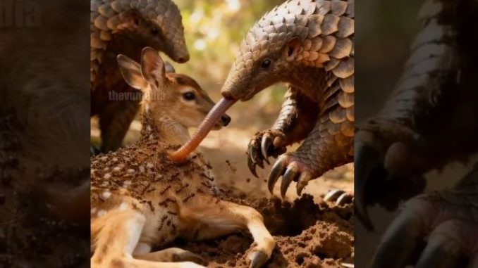 Those who later witnessed the story couldn’t help but feel emotional. It wasn’t just about survival; it was about unity, kindness, and the beauty of the natural world. The fawn lived because a group of shy pangolins answered its call and in doing so, they reminded humanity that miracles often come from where we least expect them.