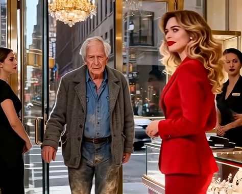 Her words hung in the air like a cold breeze. The old man’s smile faded slightly, but his tone remained gentle. “I just want something nice for her. She’s worked so hard,” he replied. Instead of compassion, the saleswoman responded with arrogance, crossing her arms and scoffing. “Look at the way you’re dressed,” she sneered. “You’re wasting my time.” She then turned her back, leaving the man standing silently at the counter.