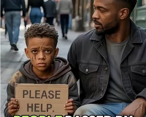 The world can sometimes feel like a cold, distant place — especially for those trying to survive on the streets. Outside the bright entrance of a busy grocery store, a young Black boy sat quietly on the cold steps. His small body shook from the wind, his clothes were worn and thin, and his faint whisper of, “Please… just some help,” was swallowed by the noise of people rushing past.