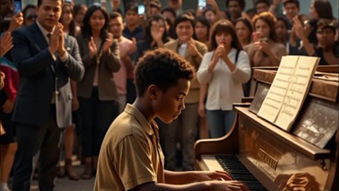 The boy quietly stood up again, walked toward the piano, and sat down. People barely glanced in his direction. Many assumed he would tap random keys, make noise, and walk away. They returned to their conversations and routines.