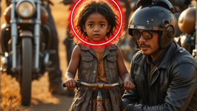 The short begins quietly. A group of bikers pulls over on the side of a road, unsure of what they are seeing. A little girl, standing beside a tiny rusted bicycle, softly speaks: “Please buy my bike, sir.” The bikers’ engines stop rumbling, and their attention shifts immediately toward her. One of the riders gently asks why she is selling it. She explains she wanted a new bike and hoped by selling this old one she would be able to replace it. Then she adds something that shatters the moment: her mother was supposed to buy her a new bike, but she never returned from work.