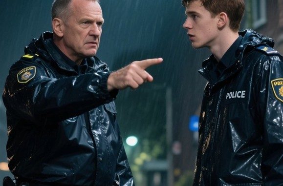 The night was cold and wet when the flashing lights painted the street in red and blue. Two police officers stood in the rain, towering over a man they believed was just another troublemaker in uniform. His jacket bore old military badges — faded, worn, and unpolished — and that seemed to be enough for their judgment.